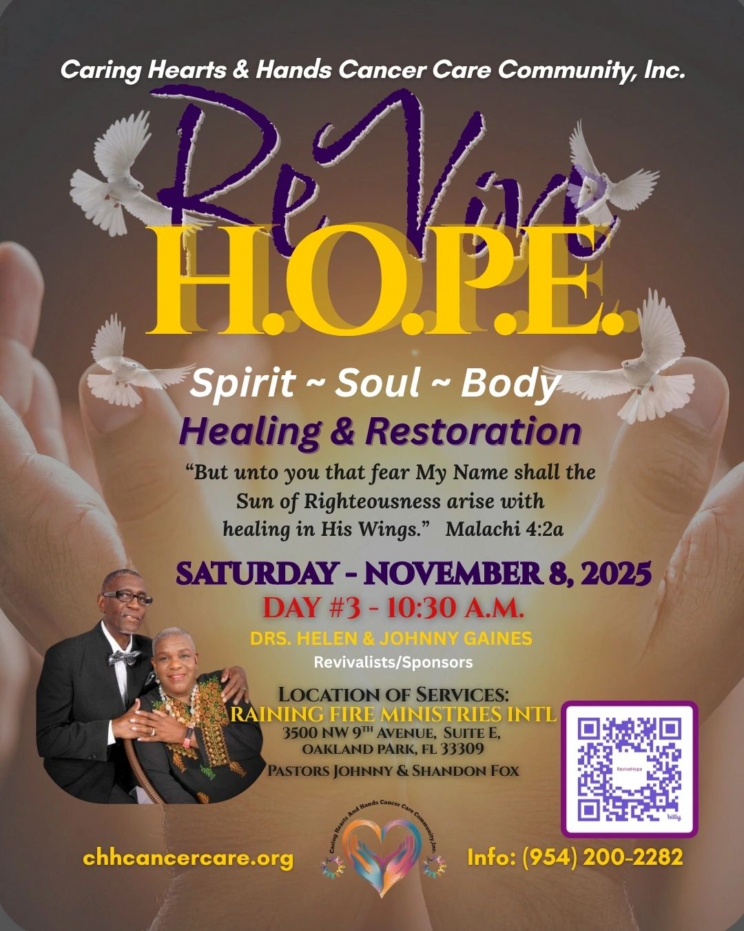 Caring Hearts and Hands starts the month off with a 3-day spiritual revival, hosted by a local ministry, to provide healing for the spirit, soul, and body!